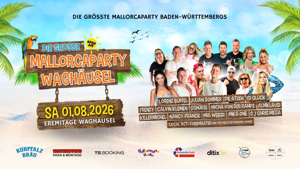 Infos & Tickets: https://mallorcaparty-waghaeusel.de/