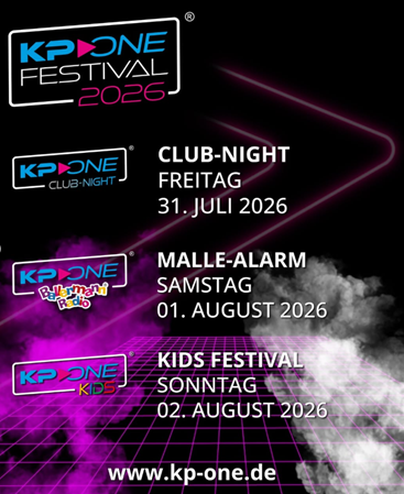 Feiert mit uns, wenn am Samstag, den 01. August 2026, unter anderem Lorenz Büffel, Kreisligalegende, Felix Harrer, Buddy Ogün und noch viele mehr das KP-ONE Festival 2026 so richtig einheizen.